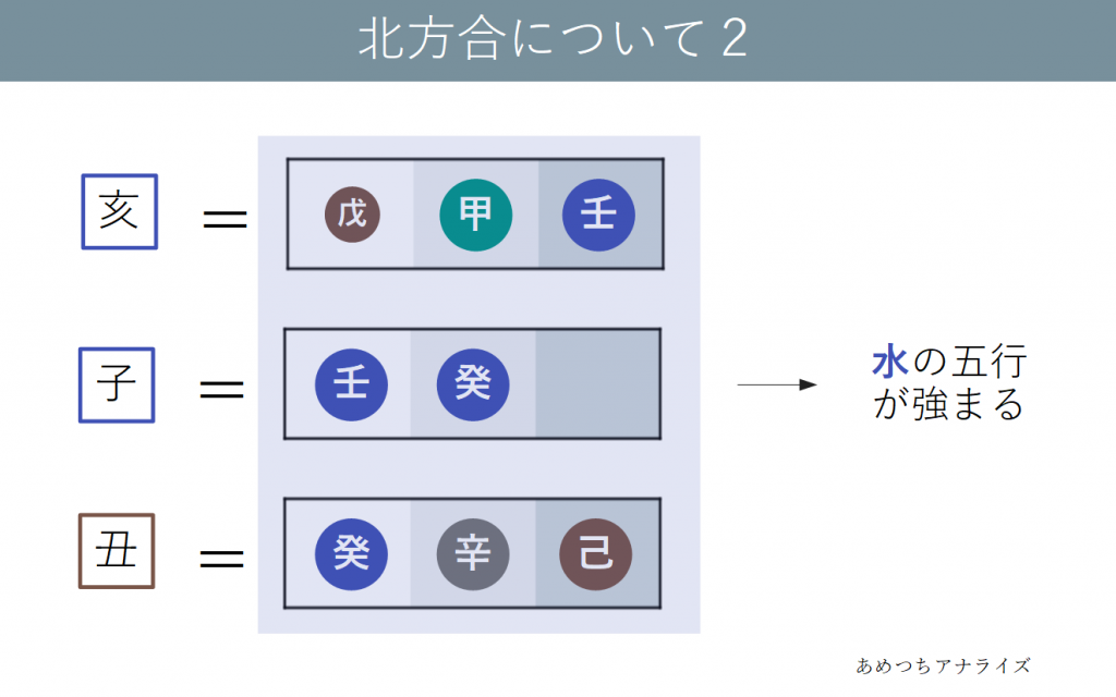 亥・子・丑が結びつき水の五行が強まる変化を北方合といいます。