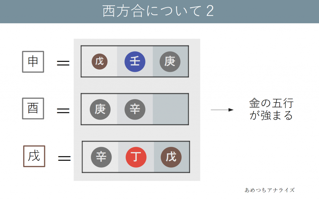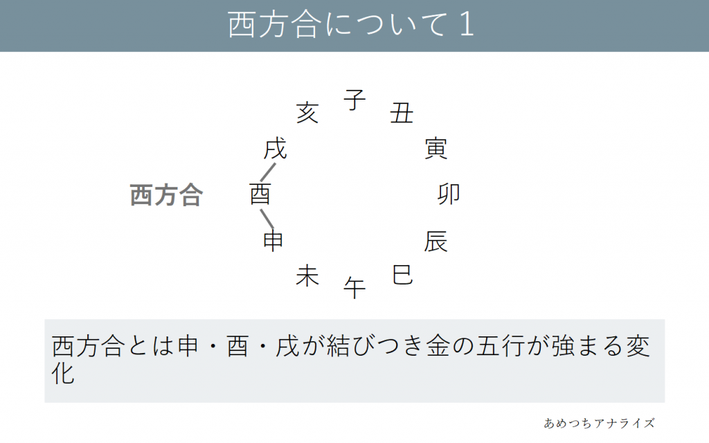 申・酉・戌が結びつき金の五行が強まる変化を西方合といいます。